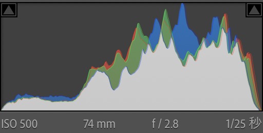 そのため黒潰れしていることに気が付かないこともあるため、ヒストグラムを使うことをおすすめします。