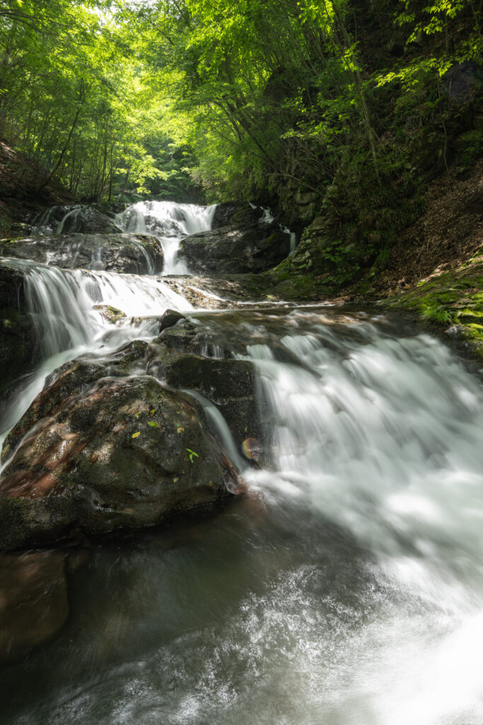 シャッタースピードを調節することで、水の流れを軌跡として撮影することもできます。